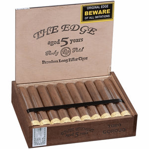 Once the Edge Corojo Toro is aflame, rich notes of spice, earth and pepper dominate the full-bodied smoke. Some caramel and espresso twist into the core tastes, while wood and cocoa round out the robust extravaganza of flavor. A long and boisterous finish lays siege to the palate and brings the intensely satisfying smoke to a mouthwatering climax.